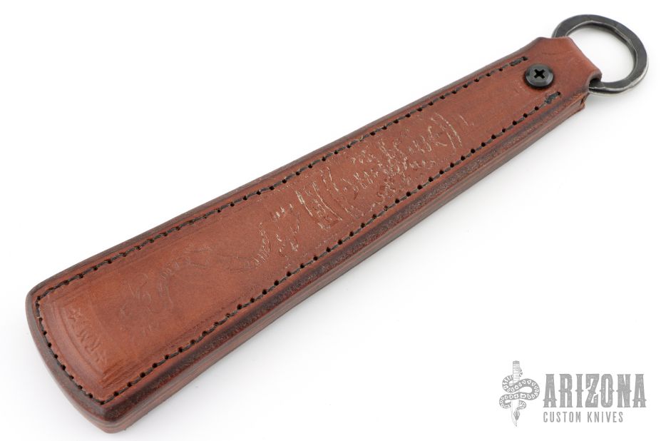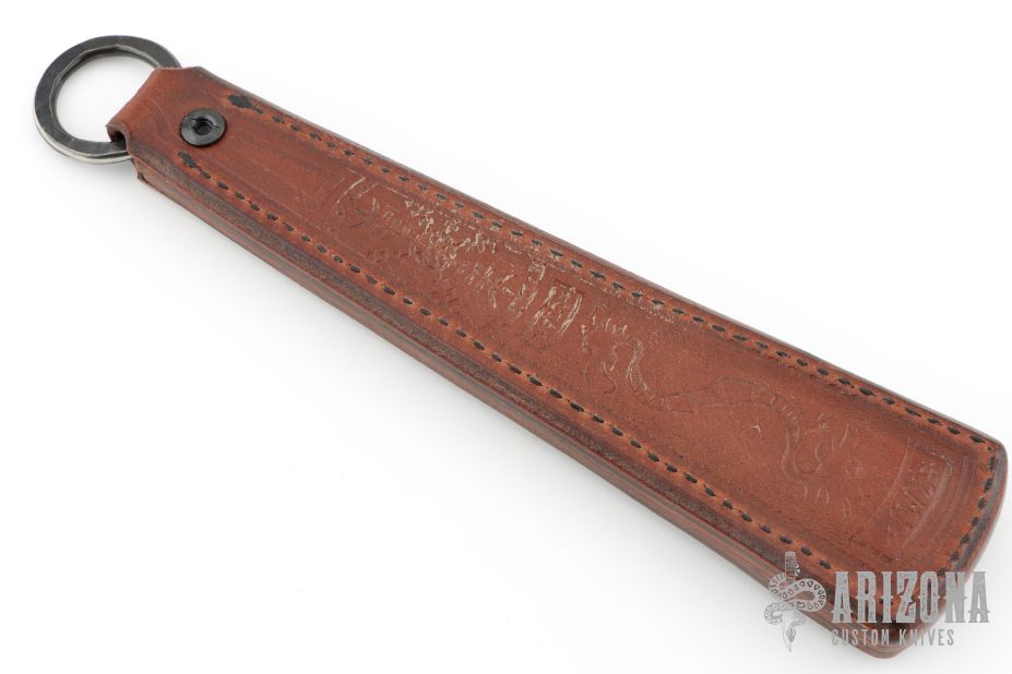 Chattanooga Leather Works has blended leather with 11 ounces of lead and spring steel to produce the Nap Hammer.  These are 8.75" long, 9.75" measured to the outside of the ring and weigh in at 11.6 ounces, the result is a rigid sap that's no joke!  They are  finished in an embossed Valhalla theme. Excellent condition.