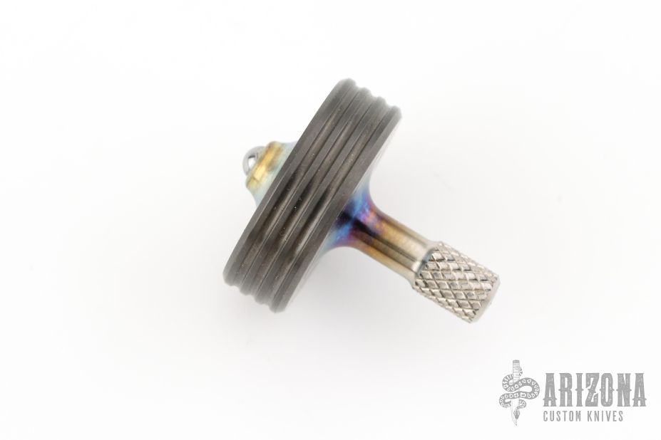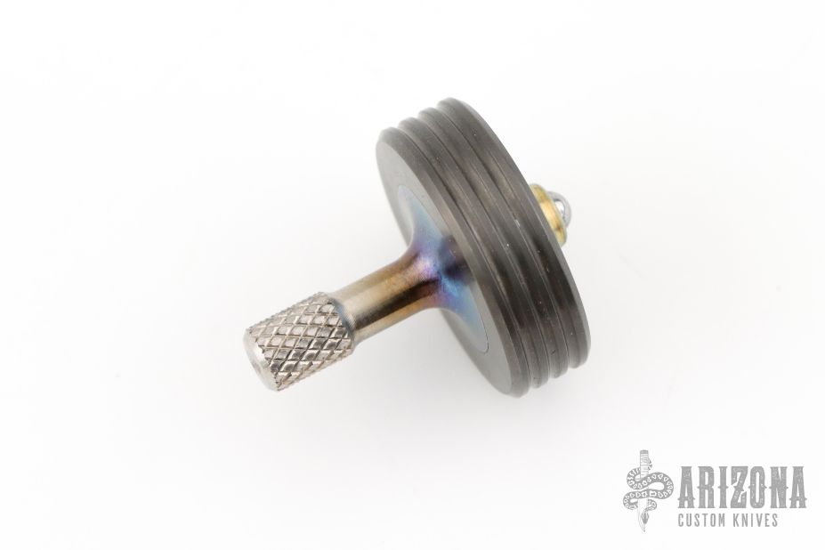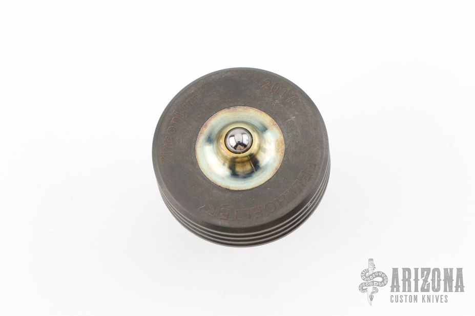 This pocket top from Brian Fellhoelter features a Zirconium disc over a flamed titanium stem stem and core. Top pivots on a stainless steel bearing. Excellent condition.