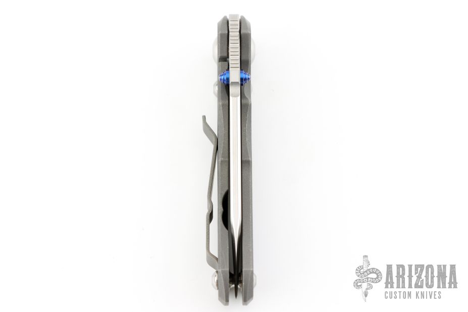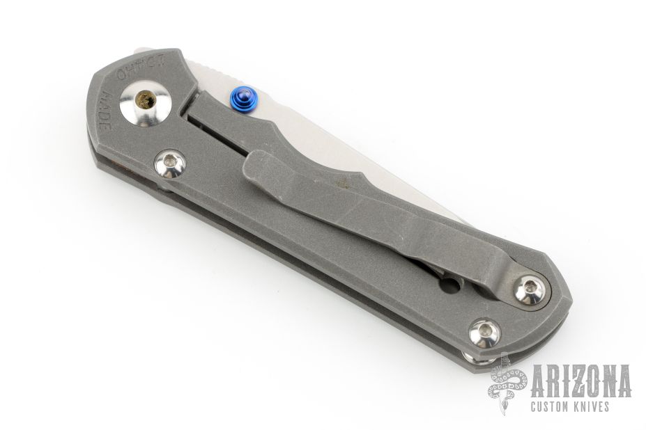 This Small Inkosi from Chris Reeve Knives features a tumble finished drop point S45VN blade with dual anodized thumb studs and notched thumbrest. The handle is comprised of a bead blasted titanium frame over a single barrel spacer with a matching bead blasted titanium tip up clip. Comes with original box and COA dated May 10, 2023. Has some scuffs and scratches, otherwise good condition.
