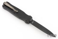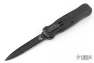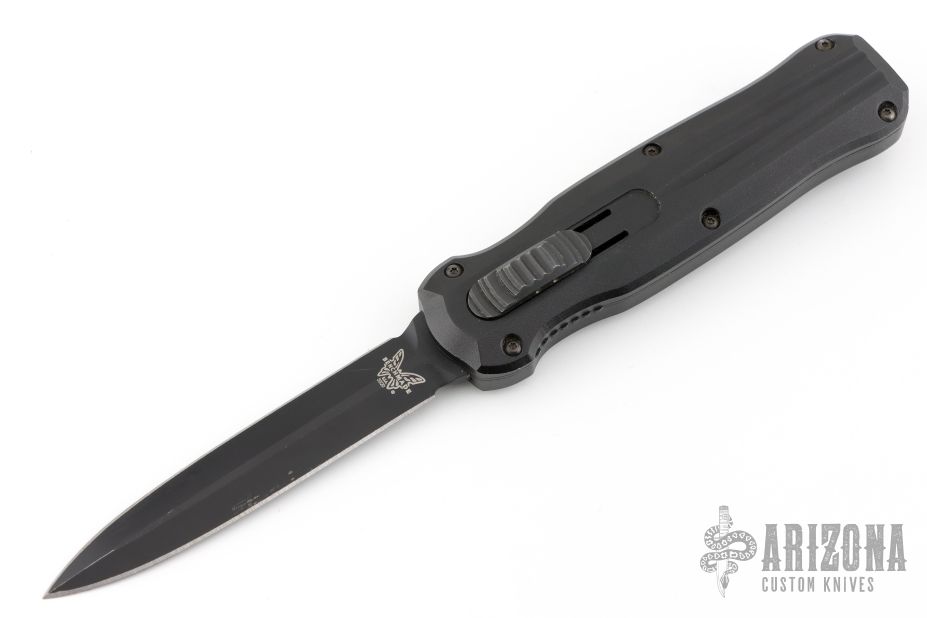 The Pagan from Benchmade features a black, chisel ground spear point blade. The handle is comprised of milled and black coated aluminum. Has some scratches on the blade, otherwise good condition.