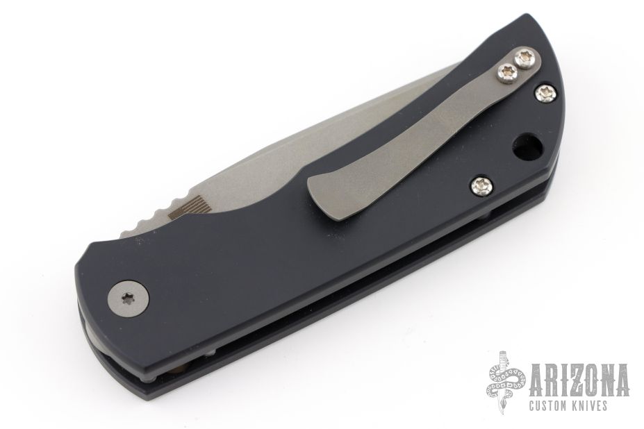This MAC2 features a stonewashed clip point Magnacut blade with a notched thumbrest. The handle features a black aluminum frame with a stonewashed tip up pocket clip. Comes with original box and COA. Excellent condition.