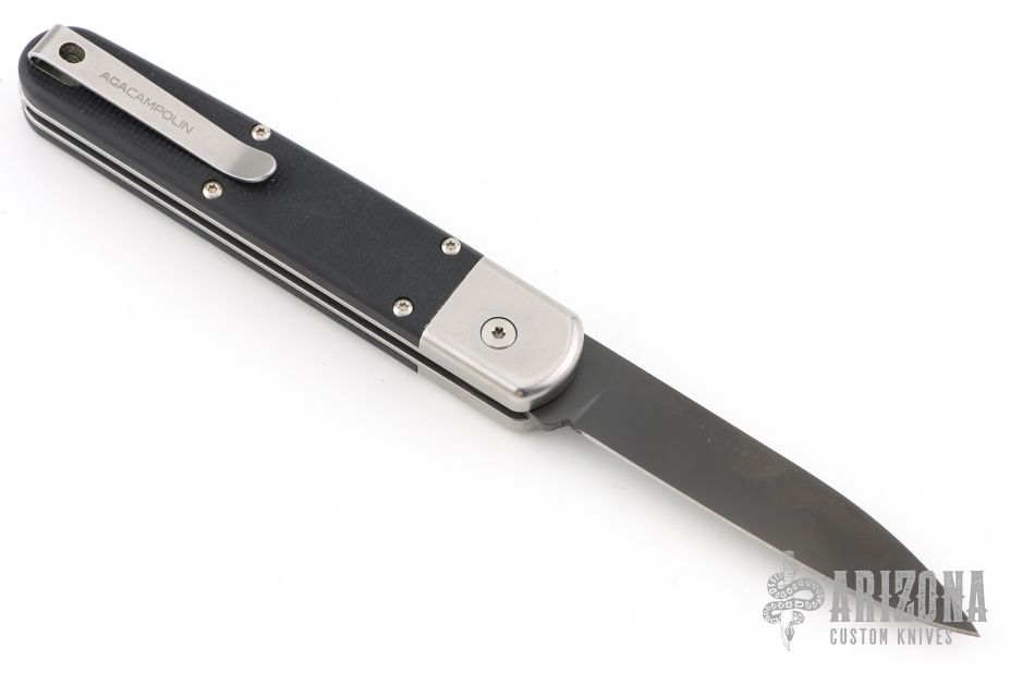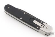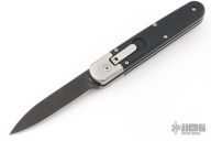 We are excited to present you the latest switchblade from the italian knifemaker company A.G.A Campolin the Baron Elite. This automatic knife is the modern evolution of the Baron build with the same leverlock mechanism like the successful "Zero". This Baron Elite is a Limited Edition of 100 pieces. It features a black finished Böhler M390 stainless steel drop point blade. The handle on this switchblade is made of black g10 3D scales and the titanium bolsters, liners, screws and clip are bead blasted. The springs are very easy to replace and the Baron Elite Limited Edition comes with an extra spring, box and certificate.