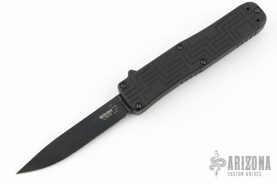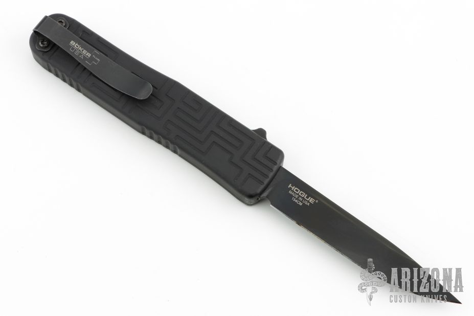 There's always a great fascination in a high quality "out the front" (OTF) automatic knife. The fast, straightforward action when opening or closing the blade is unique in the world of knives. For this purely US-based project, Boker teamed up with Hogue knives from Nevada and created these extraordinary OTF autos. The great experience of Hogue with this specific technique, together with Boker's long-time experience with switchblades for the international market, brought out an amazing knife which is extremely reliable and ready at hand whenever you need it. The massive aluminum handle is CNC-milled and equipped with a traction pattern which enhances a safe and comfortable grip. The blade is made out of 154CM steel and combines sturdiness with a high edge retention. The reversible steel clip keeps the Boker Plus OTF close at hand, in your pocket or on your gear. Fully manufactured in the USA.