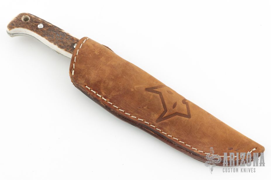 Comes with leather belt sheath. Has a couple light scuffs, excellent condition.