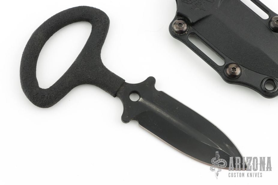 The Adamas 175BK is a compact push dagger fixed blade that features a BK1 finished 440C double edge blade. The large, open handle provides ample space and is coated for superb grip. Includes molded Kydex sheath for easy carry. Comes with original sheath. Has scuffs and scratches, great condition otherwise.