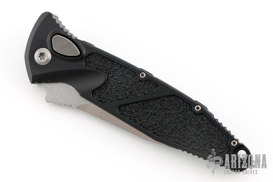 This Socom Elite Auto has a stonewash finished clip point blade with a standard edge. Black aluminum handle with non-slip inserts. Stainless steel clip, tip down carry. Glass breaker. Dated 03/2023 and s/n 8909. Excellent condition.