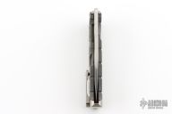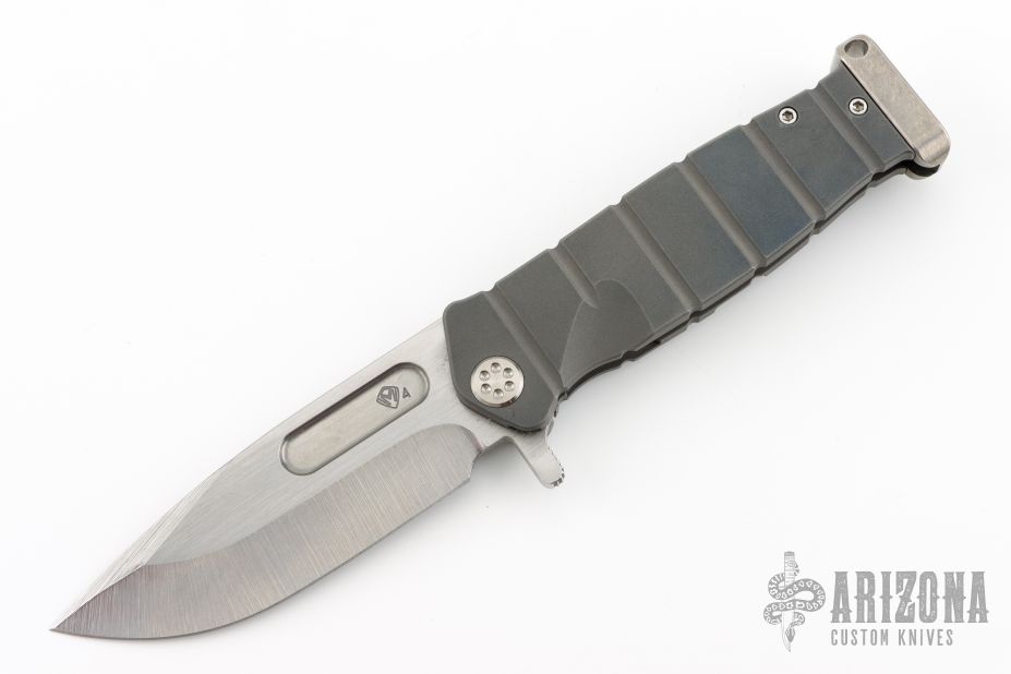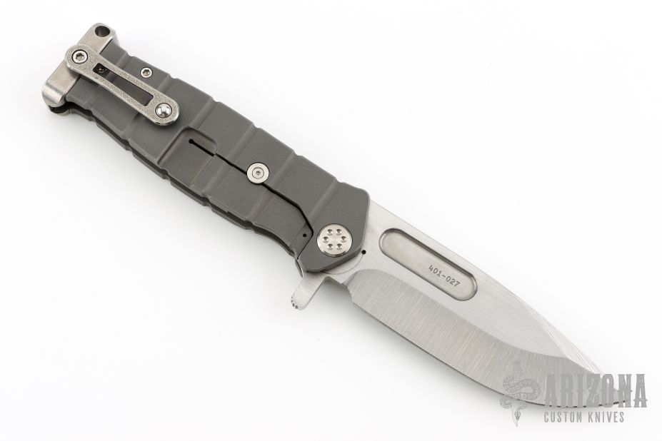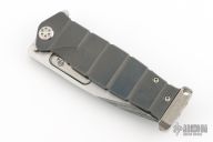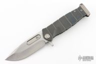 We believe we’ve come up with the best folding companion to the classic Marine Utility knife on the planet.  The knife is a perfect companion piece to the fixed “Fighter” and we call it the, “The Fighter Flipper.”.  This a big manly knife that’s as comfortable working, as it is cruising around town in your pocket.  There is so much going on with this knife its hard to take in: from the retro milling on the handles, drop-point blade, integral pommel to the bearing pressed into the one-of-a-kind pocket clip.  There truly is NOTHING like the Fighter Flipper™ in the knife world.  You will want to chop, stab and smash something with this beast in your hand so proceed with caution… Comes with original box, papers dated May 23, 2024, and zippered case. Has a couple light scuffs, otherwise excellent condition.