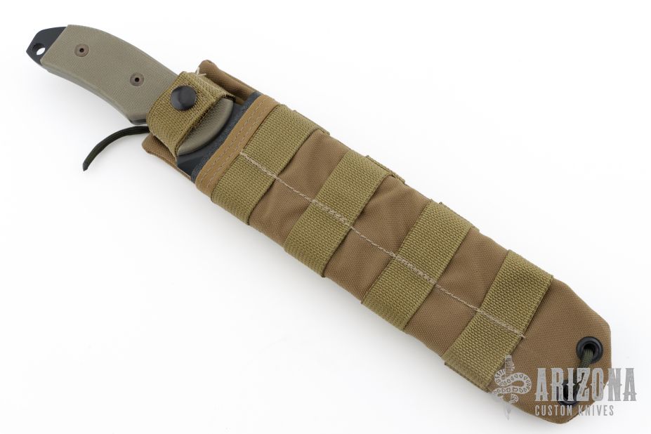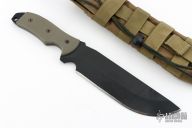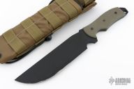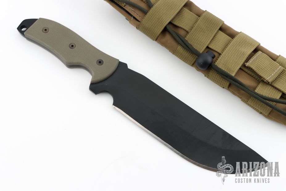 GRAYMAN POUNDER BOWIES The edge is straight for easy sharpening on the go. The full tang has a lanyard hole and a flat butt that can take a pounding. The blades are chisel ground for max blade strength, made from tough 1095 High Carbon .248" thick steel, 2.062" blade depth. Green G-10 scales. No frills, just time tested materials and solid design for no-nonsense deployment. Each knife is hand ground by Mike, 100% made in the United States. Slight variations occur, making each knife unique. Comes with a nylon/kydex sheath. Has some wear on the blade finish, some scuffs and scratches, otherwise good condition. Signed on the spine "Grayman" and "HAVE FAITH"