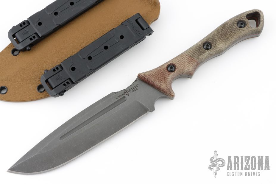 If you were headed to discover America 500 years before Columbus as Famous Norseman Leif Eriksson did, this is the knife you would have carried. With an overall length of 11.63” and a cutting surface of 5 ½ inches this is the perfect all around big blade for pillaging, hunting, or conducting modern day combat operations. Made from 1095 steel and hardened to RC 56-58, this blade will cut easily and can be field sharpened. The VTAC Norseman has a sexy spine tastefully decorated with a Viking Vine, and Blood Colored handle liners. Drawing inspiration from a knife made by one of SGM Lamb’s Soldiers who was killed in action in Iraq on 17 June 2005. Kyle Lamb the Founder of Viking Tactics proudly presents the VTAC Norseman. This knife comes with a kydex sheath with clips.