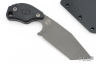 This SLCC by Mick Strider features a "Grey Matter" finished tanto blade with a notched thumbrest, .153" blade stock and 1.566" blade depth, full tang construction. The handle has checkered black G-10 scales. Comes with a kydex sheath, original box and COA dated Microbatch 2023. Has a couple light sheath scuffs, otherwise excellent condition.