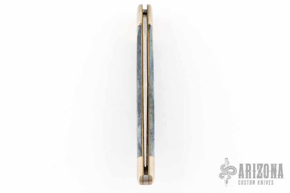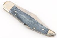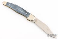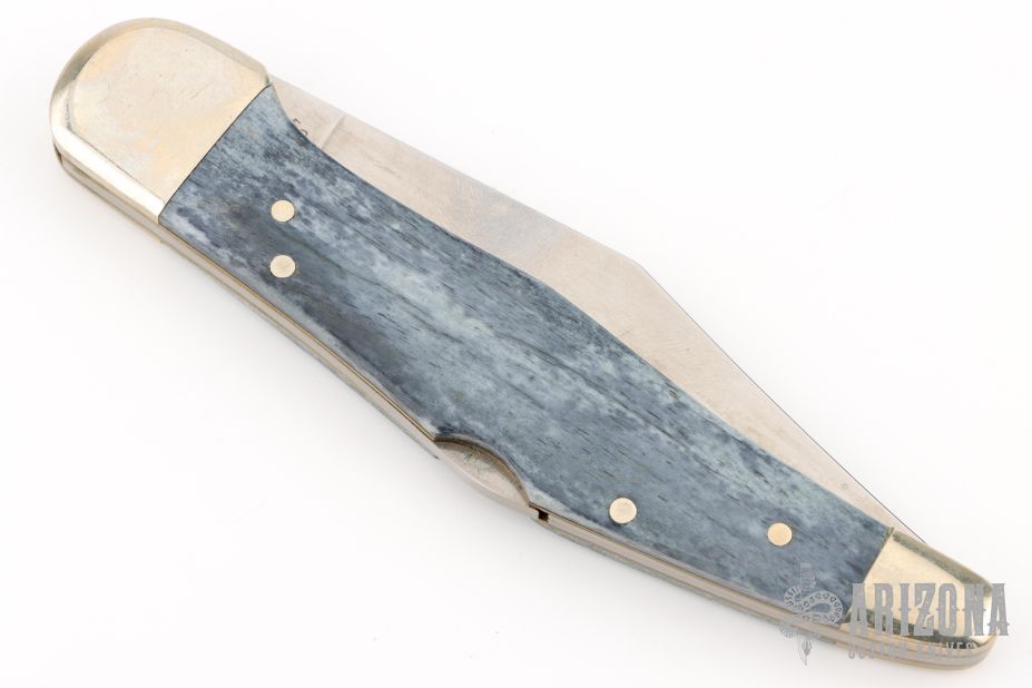 This Large Single Blade Hunter offers an extraordinarily smooth blade action and perfectly fitted smooth Grey bone scales with inset round shield, crowned by Nickel silver bolsters. The 3.625" classic C75 carbon steel Clip blade locks securely with the sturdy lockback mechanism. The Grey bone scales and the polished blade make this knife special, in showcase or pocket. 5.25" closed