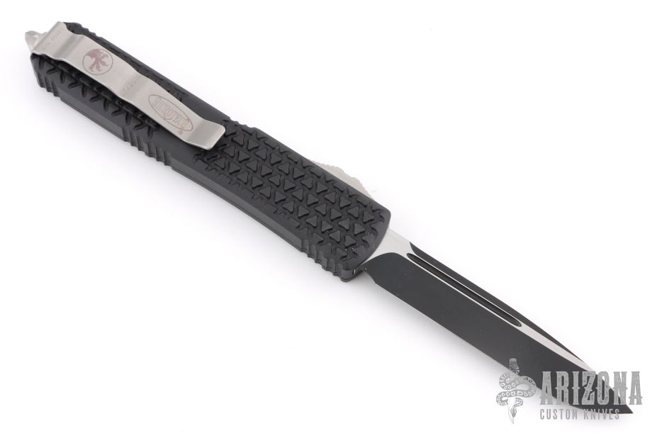 This Ultratech OTF automatic features a S/E black blade with a standard edge and a black aluminum Tri-Grip frame. Stainless steel clip. Glass breaker. 07/2016 s/n 66007. Has some light scuffs, excellent condition otherwise.