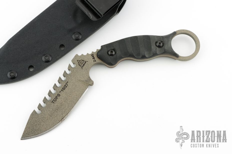 The TOP Knives 10/27 fixed blade karambit offers the functionality of a karambit with the utility of a standard fixed blade knife. Ready for forward operations the 10/27 is a tool you can depend on when seconds matter.