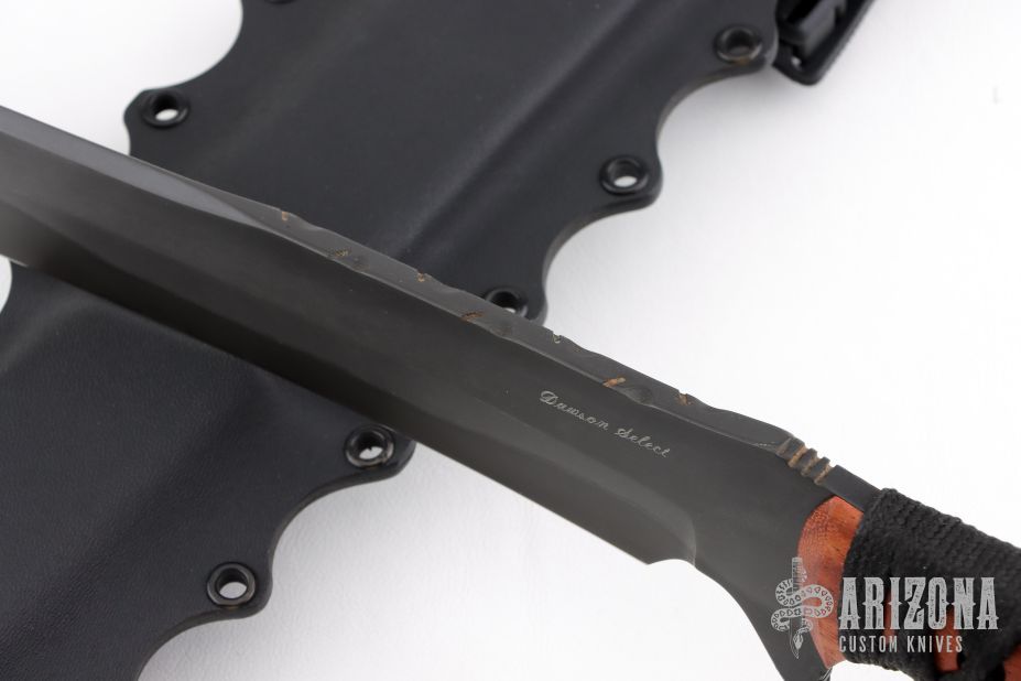 In 1973, Barry Dawson built his first knife shop inside a dilapidated barn. Fresh off a stint in Vietnam and flat broke, he built most of his machinery himself out of parts scavenged from the local landfill. What he didn't know, he learned, and what didn't exist yet, he invented. More than 40 years later Dawson Knives has grown to encompass three generations of knifemakers, all working together out of our shop in Prescott Valley, Arizona. Each of our knives and swords is 100% designed and handcrafted by us in the USA. We handle every aspect of the knifemaking process in-house, from cutout and grinding to heat-treat, finishes, sheaths and sharpening. We're constantly researching new and better knifemaking methods and the latest advances in materials to ensure we deliver you the best custom knife available.