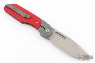 This Synapse XL Second Run Folder by Vero Engineering features a stonewash finished blade with notched thumbrest and flipper. The handle has a tumbled titanium frame with g10 scales, tip up titanium clip with hidden screws. Rides on bearings, nice detent, lockup and blade seating. Comes with zippered case and COA #658. Excellent condition.