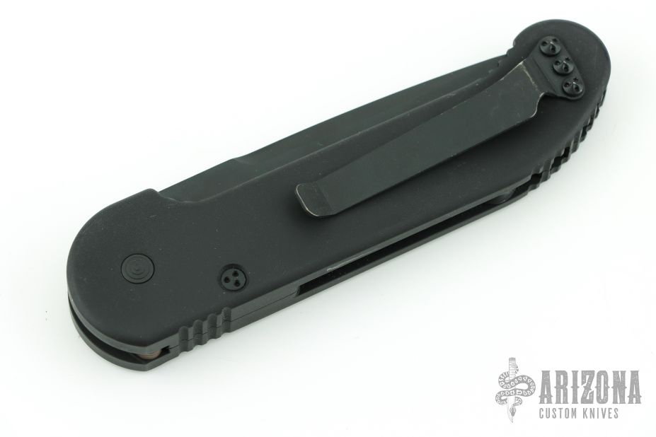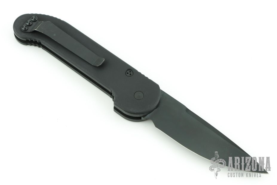 This LUDT by Microtech has a black coated plain edge blade. Black handle that has been milled out to reduce weight, black hardware and tip up stainless steel clip. Side opening coil-spring automatic. Has a couple light scuffs, otherwise excellent condition.