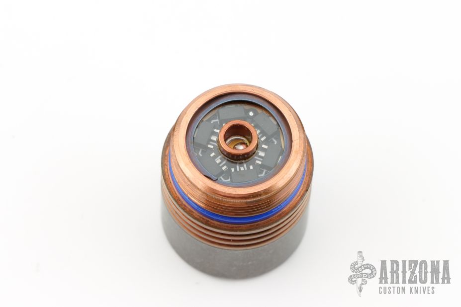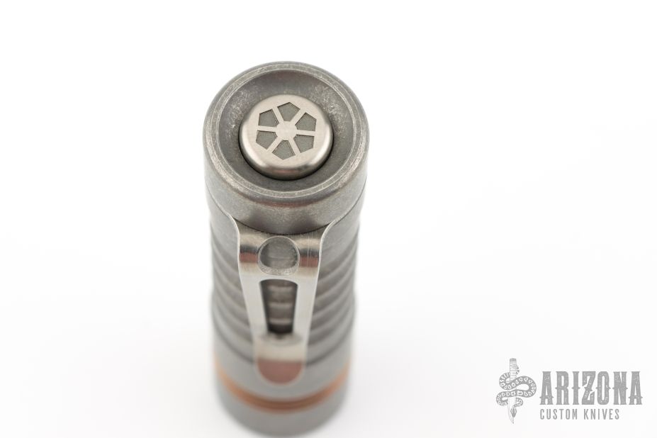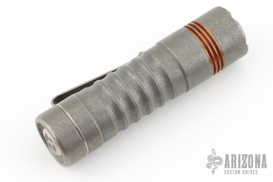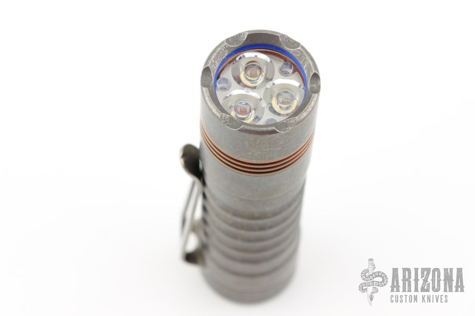 Prometheus “Delta” Flashlight – This is a custom Burgess finished titanium Delta with Triple Nichia Light Engine made by Jason Hui and is completely programmable. No battery is included. Has a titanium button. Excellent Condition.