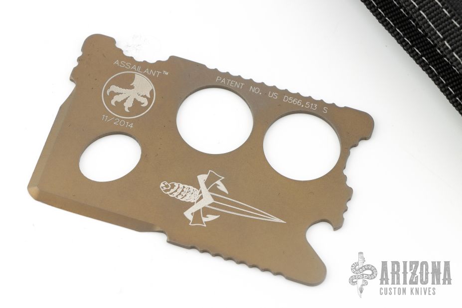 This Assailant by Marfione Custom Knives features an anodized and tumbled titanium blade. Comes with original wallet. Dated 11/2014. Excellent condition.