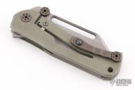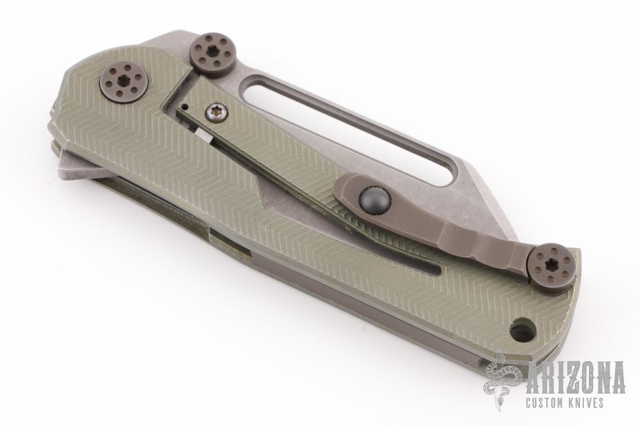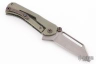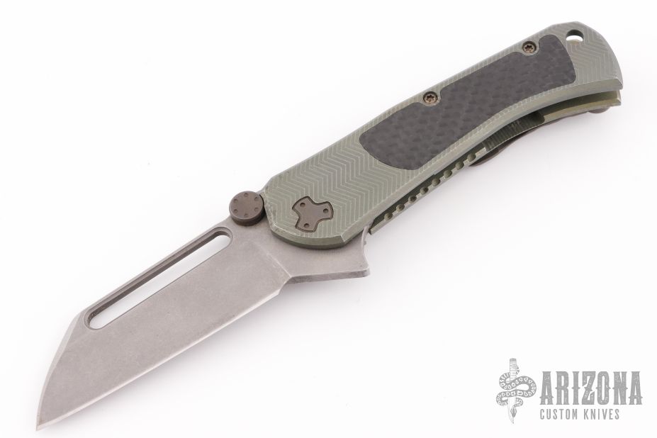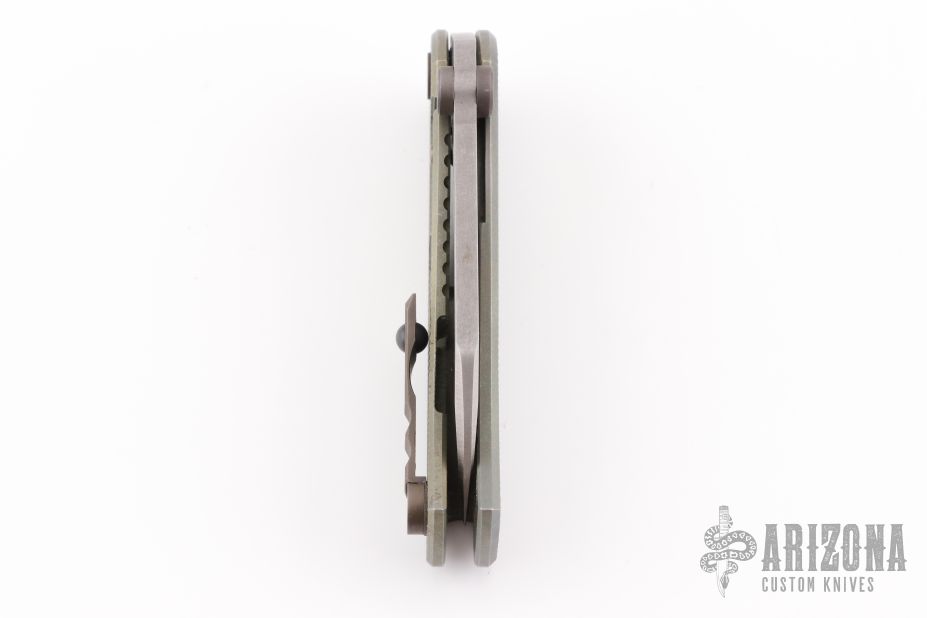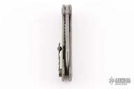 This Echo-1 by Mikkel Willumsen features an acid tumbled wharncliffe blade with dual thumbstuds and flipper. The handle has a milled and anodized titanium frame with carbon fiber inlay, tip up titanium clip. Has stainless lockface insert, rides on bearings, nice detent and lockup. Has a couple light scuffs, otherwise excellent condition. Comes with original box and papers.