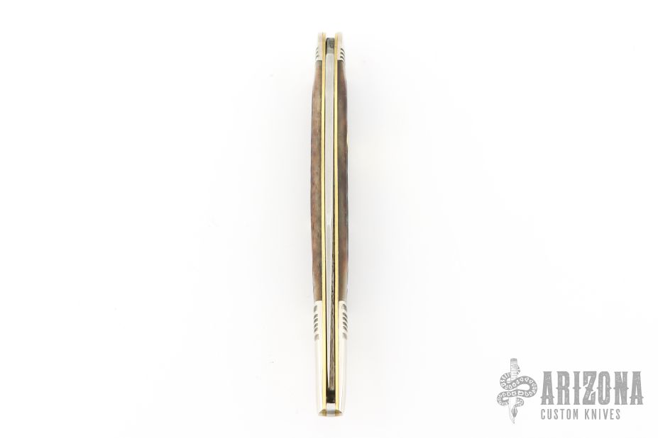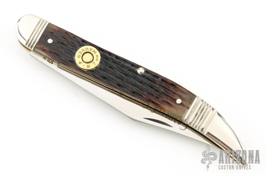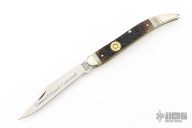 This Slipjoint from Camillus features a satin finished blade with nail nick. The handle has nickel silver bolsters and jigged bone covers over brass liners and stainless steel spring. Excellent condition. Comes with original box and papers.
