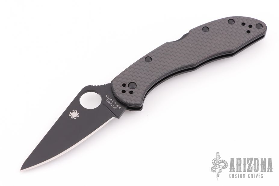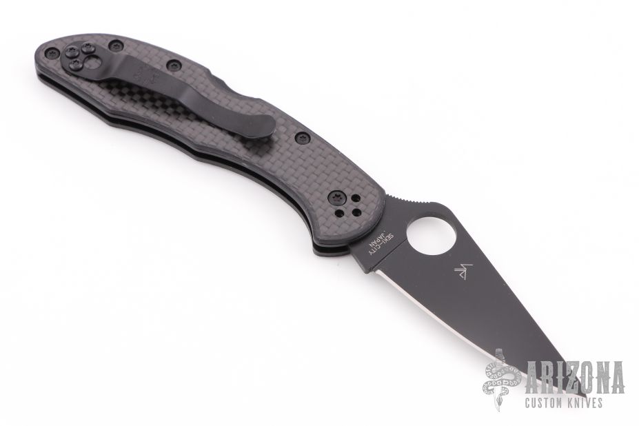 A true icon in the world of everyday carry, the Spyderco Delica 4 has evolved over the decades into one of the most refined and versatile folding knives available. This version enhances the classic design with a CPM-CruWear tool steel blade, offering superior toughness, edge retention, and wear resistance. The full-flat grind ensures smooth, efficient cutting performance, while the black TiCN (Titanium Carbon Nitride) coating enhances durability and reduces glare. Complementing the premium blade is a sleek yet lightweight carbon fiber handle, delivering both style and a comfortable grip. A four-position pocket clip allows for fully ambidextrous carry, making this lockback knife a high-performance companion for any cutting task.  New from maker!