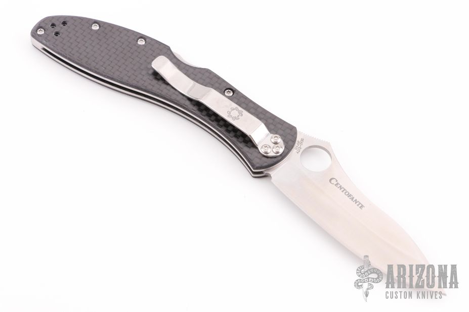 Rather than the injection-molded FRN handle and two-position clip that are standard of the Centofante 3, this remarkable edition showcases smooth black carbon fiber scales and a four-position clip that is configurable for left or right-side, tip-up or tip-down carry. Includes the original box and papers. New from maker!