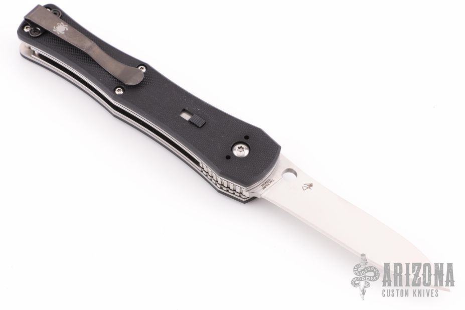 This JaniSong by Spyderco Knives is a Michael Janich design and is rare in the USA since Spyderco chose to only sell this knife outside the USA. Features a satin finished blade. The handle has black G-10 scales with locking switch, stainless steel liner and barrel spacers. Has a black stainless steel 4-Way Reversible clip. Includes original box and papers. Excellent condition.