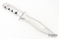 This knife is completely integral, mirror polished, .220" bladestock, 1.530" blade depth, integral construction. Excellent condition. Comes with original box.
