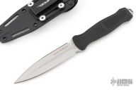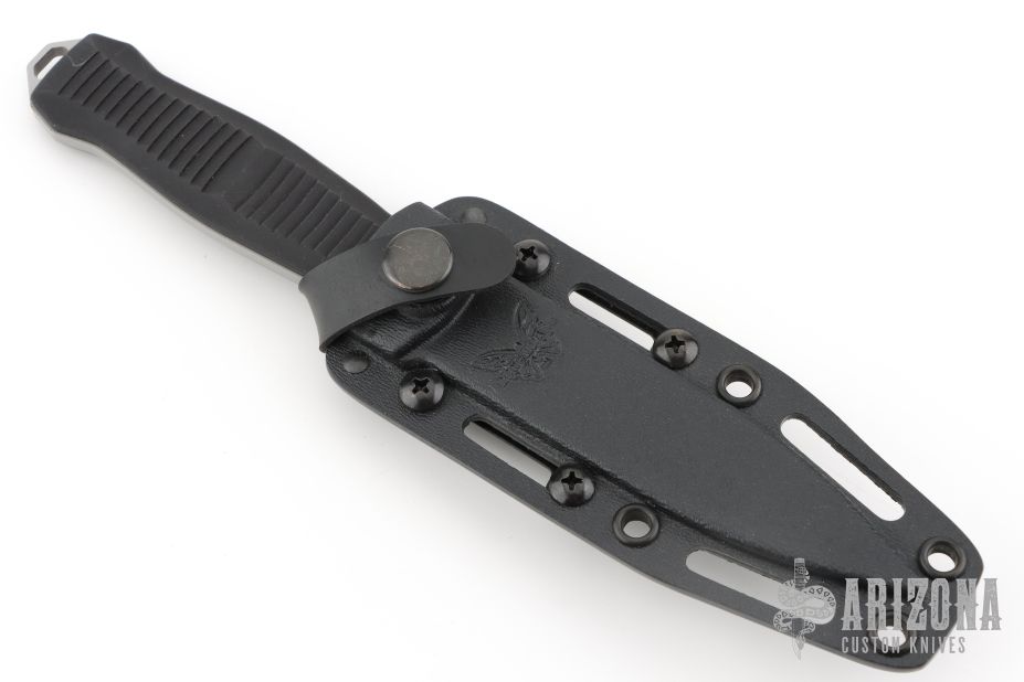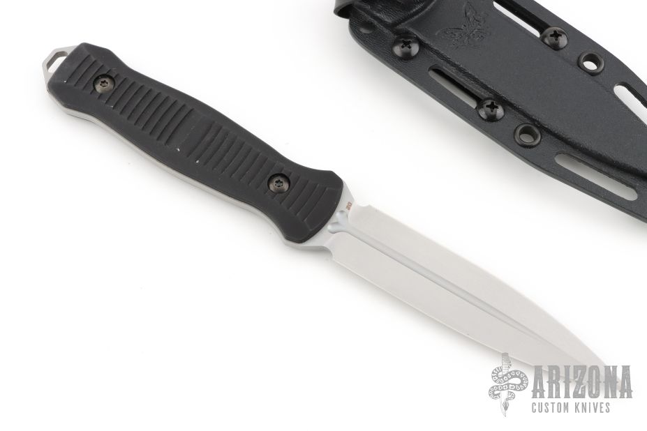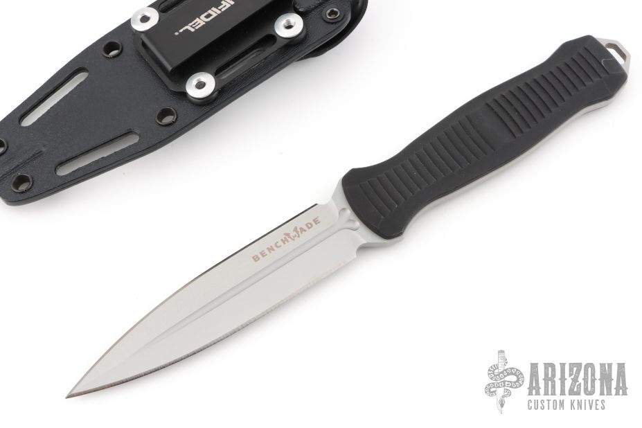 The Benchmade 133BK Fixed Infidel is a full-tang tactical fixed blade designed after the iconic Benchmade Infidel out-the-front knife. Its double-edged blade is made from resilient D2 tool steel. Grooved, black anodized aluminum scales provide absolute grip security. Includes a Tek-Lok compatible Boltaron sheath.