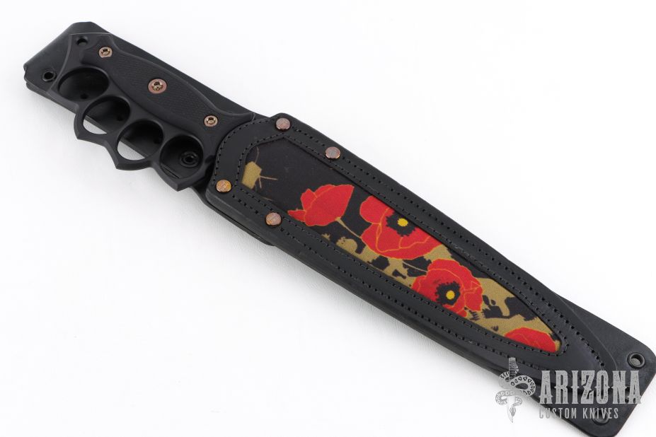 - Black Leather with Poppies of War inlay by Andrew Bawindamann, each pattern is uniquely different, no two sheaths are the same.