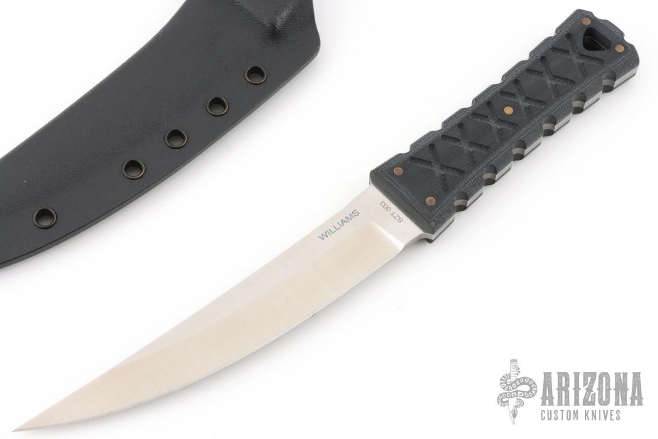 The largest blade in our Shobu Zukuri series, with the same classic grind for excellent lateral strength and cutting ability. This full sized knife is designed for maximum utility in an easily carryable size. Featuring industry leading MagnaCut stainless steel, for best in class toughness and edge retention, and double black canvas micarta handle scales with brass pins. We produced this blade with TRC Knives because of their reputation for outstanding craftsmanship and attention to detail. The SZT 003 is a knife made for hard use, but with the refinement of a collector’s piece. This is an individually numbered batch of 125 pieces.