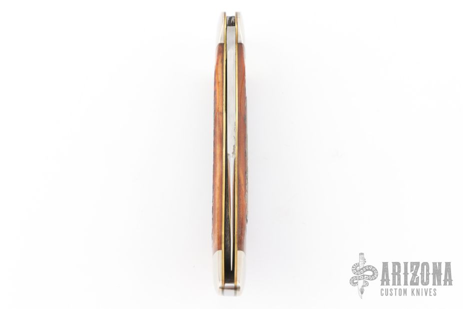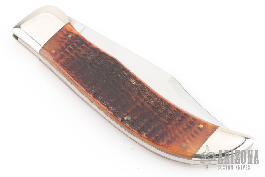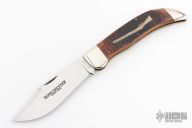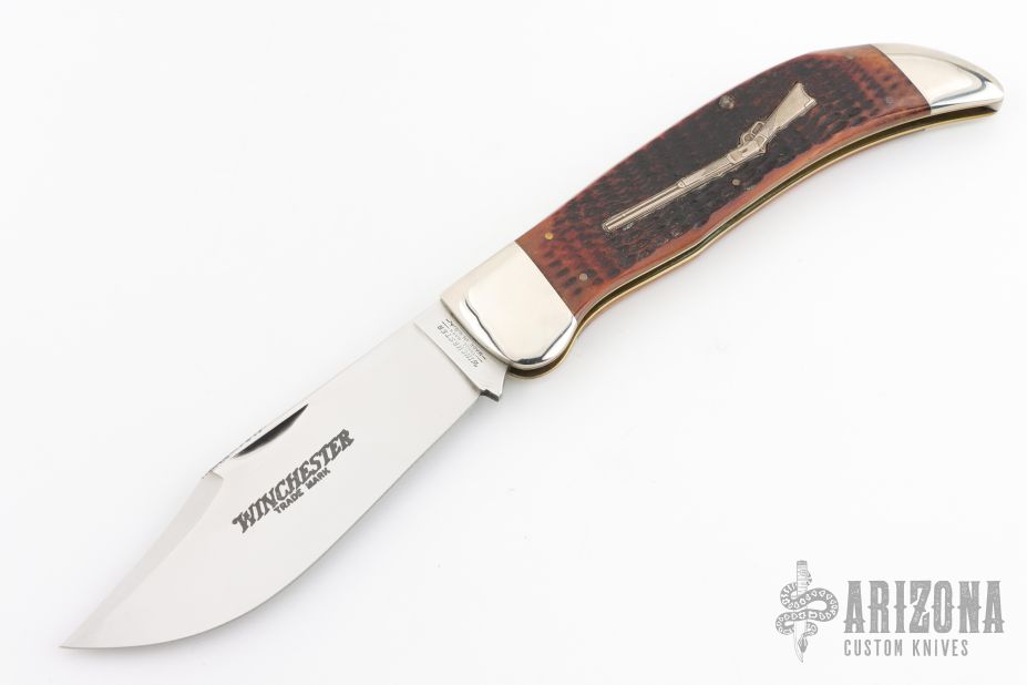 This Winchester slipjoint has a mirror polished blade with nail nick. The handle has nickel silver bolsters, jigged bone covers, nickel silver escutcheon, brass liners, stainless steel backspacer. Comes with original box and papers. Has some light scratches, excellent condition.