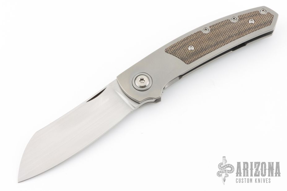 This Haddock Framelock by Jens Anso features a hand rub satin finished blade with nail nick. The handle has an intricately milled titanium frame with a green canvas micarta inlay, titanium tip up clip and backspacer with lanyard hole, titanium hardware. Nice detent, lockup and blade seating. Comes with box and COA dated June 2021. Excellent condition.