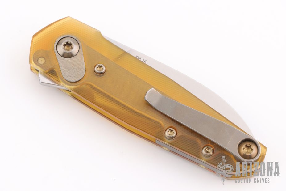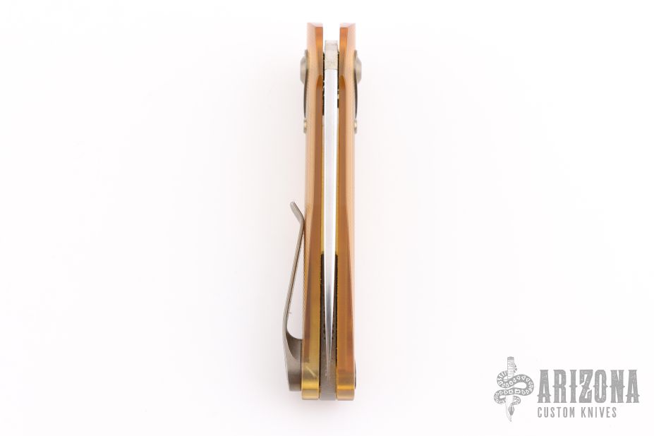 Its unique design features a precision-engineered blade and one-piece integral chassis construction for each side, incorporating the pivot screw, button lock, clip, and lanyard attachment point. The full assembly is securely held together with titanium screws on the back of the handle.