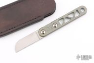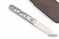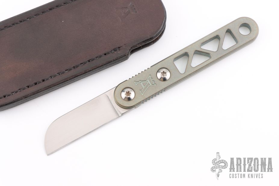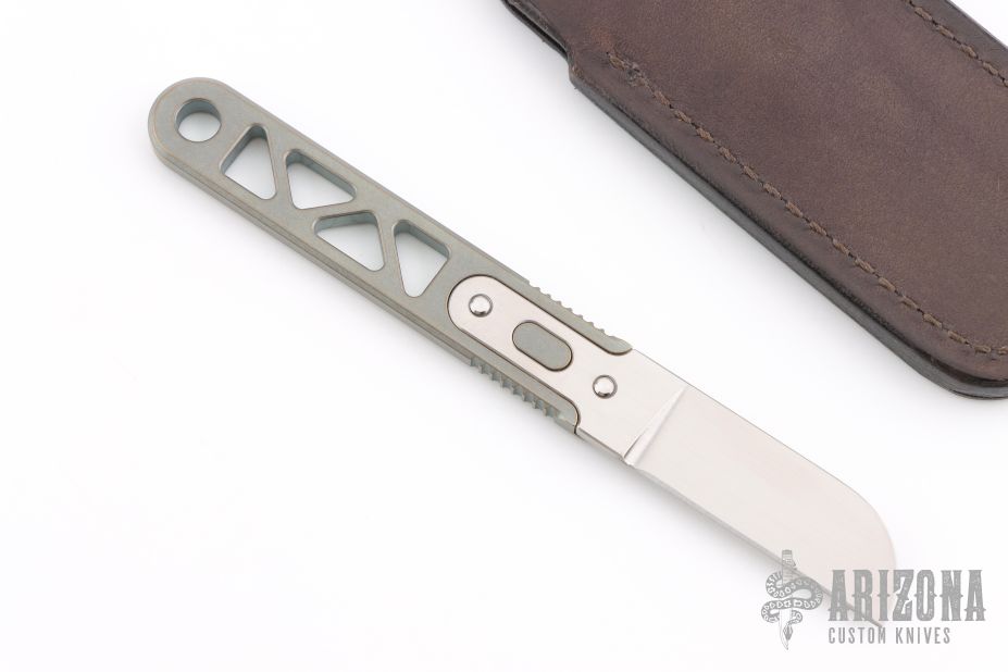 The handle has weight reducing, grip enhancing milled slots. The blade attaches via two 6/40 titanium screws.