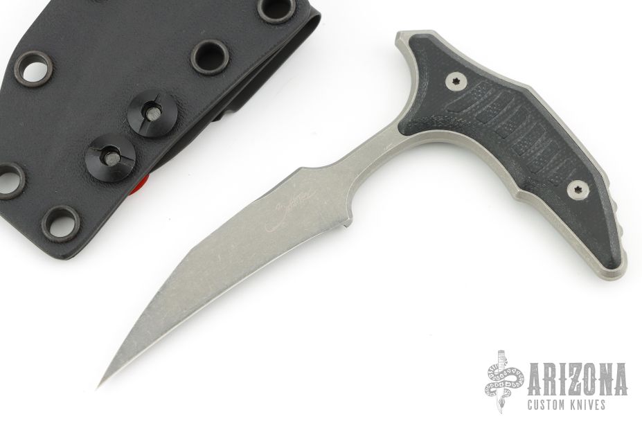 The BEE is a push dagger collaboration with Bastinelli Knives that is both stylish and highly effective. It's a tactical knife through and through, and we honestly can't think of a better knife we'd want in a close-quarters combat (CQC) encounter than this. Its design characteristics target specific CQC needs such as swift, effective deployment, reliable cutting and penetration, low visibility profile, modular carry options, and robust construction. Straight punches, jabs, and hammer fist strikes yield tremendous cutting potential with minimal training or effort. The included friction fit Kydex sheath is outfitted with a discreet carry concept (IWB) clip that keeps the knife close at hand and poised to strike. It shines in a last-ditch tactical scenario but works equally well as an everyday carry fixed blade. Comes with original box, papers, and Kydex sheath. Has an apocalyptic chisel ground blade, standard edge, and G-10 handle. Excellent condition. #517 and dated 06/2023