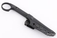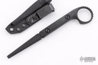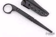 This Ringed Flathead Tool by Half Face blades. Has a black cerakoted blade with black G-10 scales. Comes with kydex sheath with ulticlip. Has a couple light scuffs, otherwise excellent condition.