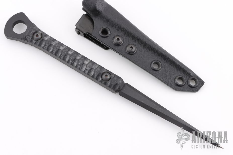 This Cardiac Spike by Half Face blades. They have cerakoted S35VN blades with black G-10 handle. Comes with kydex sheath with belt clip. Excellent condition.