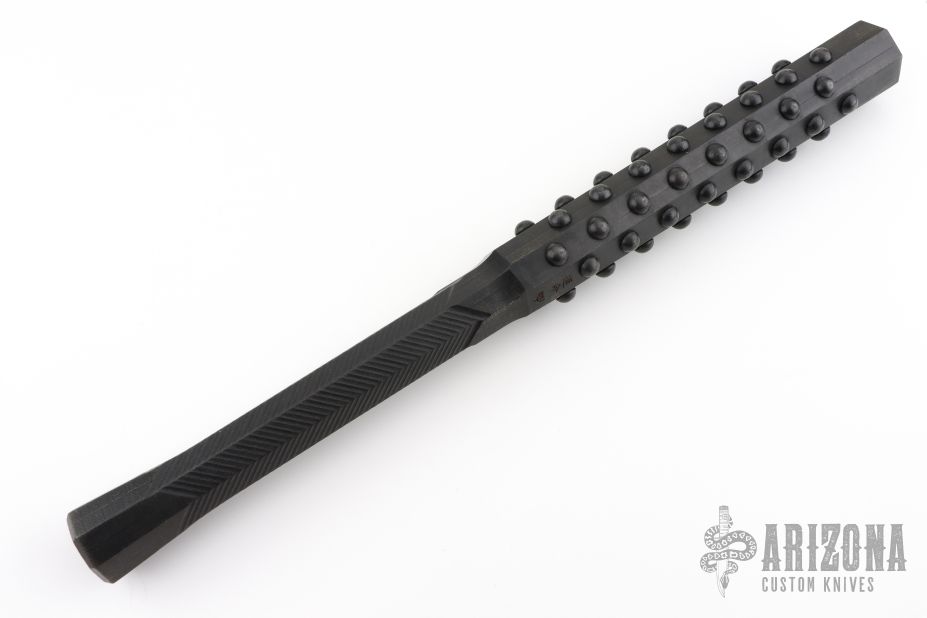 Tetsubo War Club by Ryan Johnson. Gold Point Forge, full hickory construction, hand inlaid rivets. Heavy and 1.625" in diameter. Excellent condition.