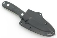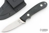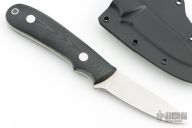 This K-8 Semi Skinner by Dozier Knives features a satin finished blade, .131" blade stock and .869" blade depth, full tang construction. The handle has black linen micarta scales with aluminum pins and lanyard hole. Comes with kydex sheath with belt clip. New from maker.