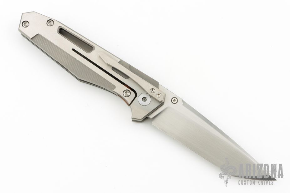 New Folder Model From Biegler Bladeworks, This Knife is a manual folder frame lock, featuring a thumbstud on one side, the handle is made of titanium, The Blade is a satin finish.