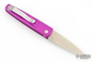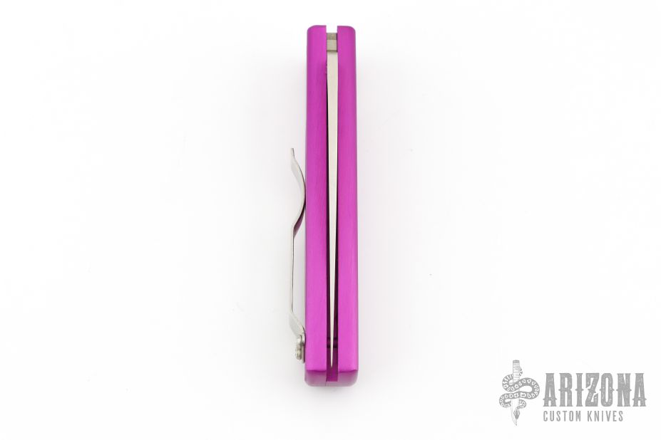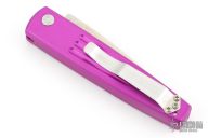 This Spike automatic by Benchmade Knives features a satin finished blade and purple anodized aluminum frame with tip up stainless steel clip. Comes with original box and papers. Excellent condition.