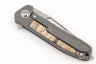 Arno Bernard's iMamba Frame Lock Flipper is a EDC designed for high performance and hard use. The blade is hard ground satin finished blade. Ball bearing pivot. The handle is bead blasted titanium with mammoth tooth inlays, bead blast finished titanium tip up clip. Comes with original box and papers. Excellent condition.