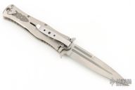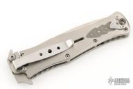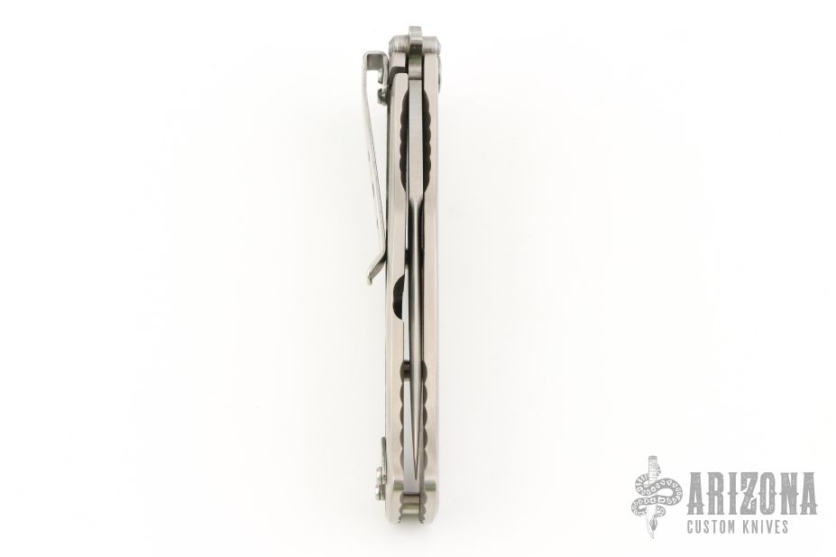 This Madd Maxx IV features a hand rub satin finished blade with fullers, flipper and false top edge. The handle has a satin finished and milled titanium frame with tip up or down reversible stainless steel clip. Nice detent and lockup. Has some light scratches, otherwise excellent condition.