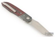 This Cygnet by Nick Swan features a bead blasted blade with elongated swedge and a notched flipper. The handle has zirconium bolsters with titanium pivot collars, Fat Carbon scales, orange peel finished titanium liners and tip up titanium clip with hidden screws, titanium backspacer. Rides on bearings, nice detent, lockup and blade seating. Comes with a cloth pouch and COA. Excellent condition.