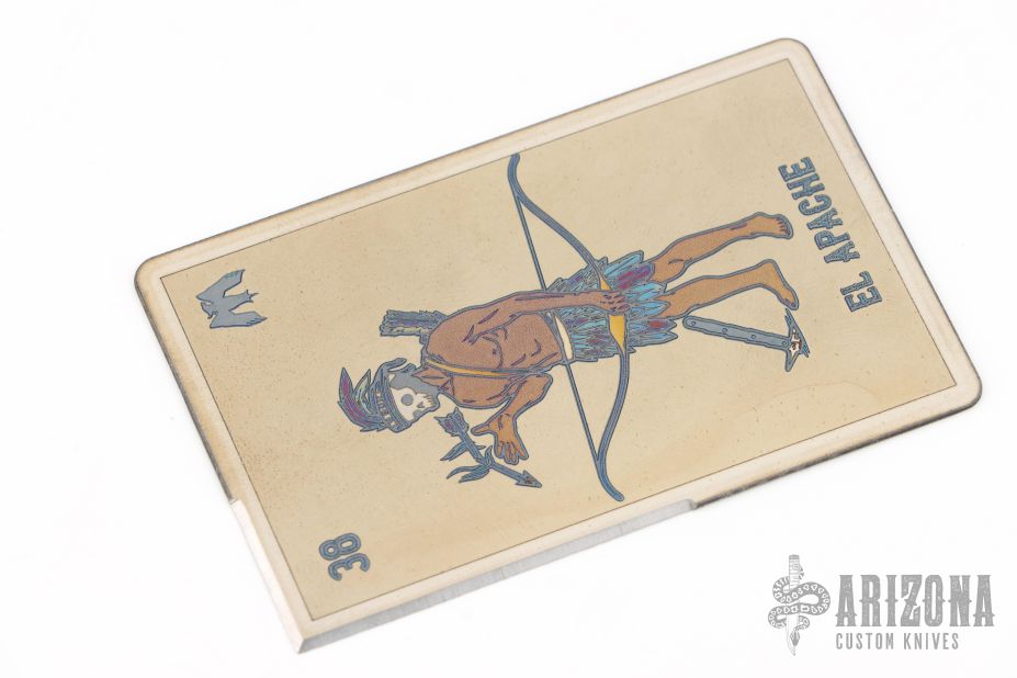 The "El Apache" CC-L is a titanium cutting card in collaboration with Sneak Reaper Industries. Unlike some other credit card tools, the CC-L is built for a singular purpose - to give you a razor sharp edge that you can always have with you. It is constructed from .027" thick 6Al-4V titanium with a deeply impregnated carbide layer with a Rockwell Hardness of 72. The perfect back up blade for any situation.