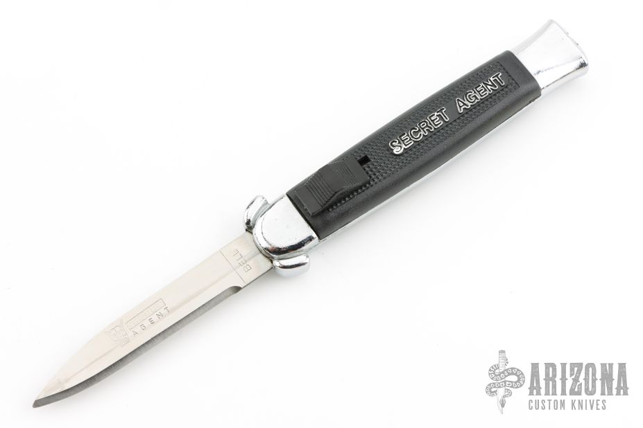 Vintage Secret Agent Automatic OTF Auto by Bell. Has some scratches, otherwise good condition. Comes with the original box.