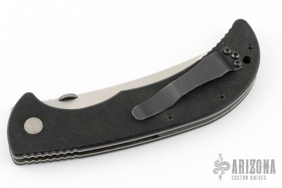 The Emerson P-Tac Persian features an upswept stonewashed blade, black G10 scales over titanium liners. Notches on thumbrest, lock, and rear of handle. Tip up black stainless steel clip. #552 and dated 2011. Excellent condition. Comes with original box and papers.