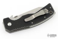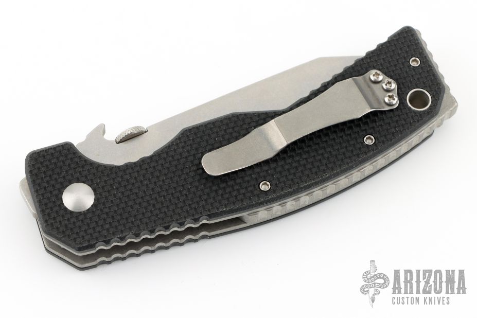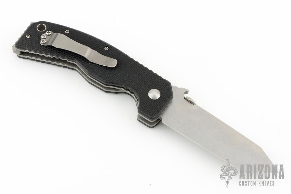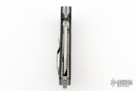 This XHD-HMMVK-SF by Emerson Knives features a satin and stonewashed chisel ground blade with thumbdisc, wave feature and notched thumbrest. The handle has textured black G-10 scales, tumbled titanium liners and notched backspacer, lanyard hole, tip up reversible stainless steel clip, stainless steel lockface insert. Rides on bearings, nice detent, lockup and blade seating. Comes with original box and papers. #0033 on blade. Excellent condition.