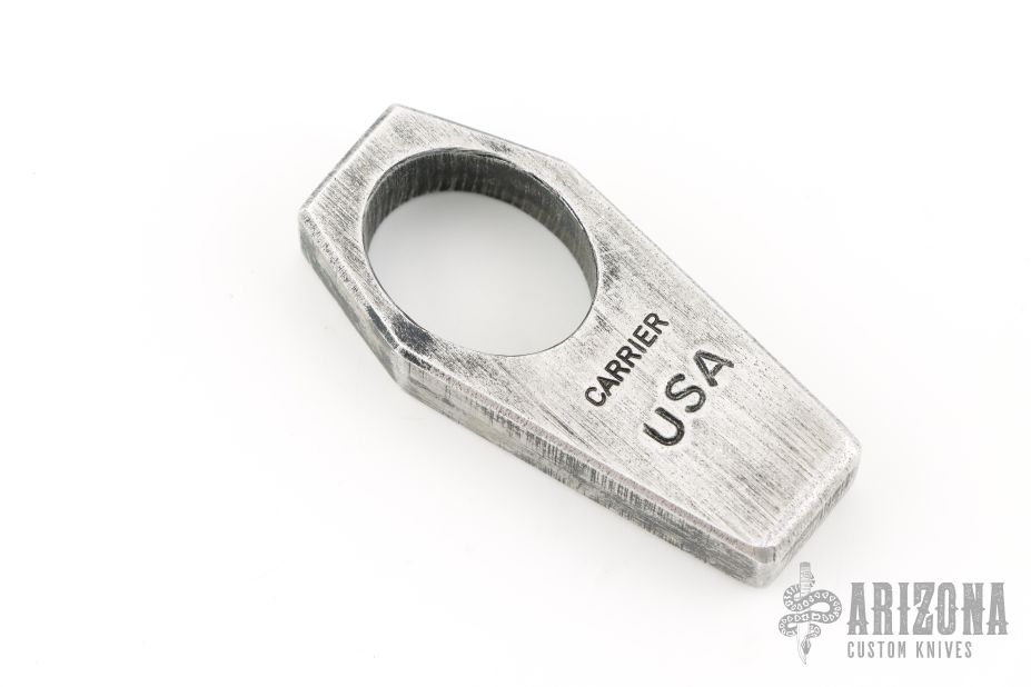 Tombstone Aluminum Knuckle by Andrew Carrier. .495" thick. Has some scuffs, otherwise excellent condition.